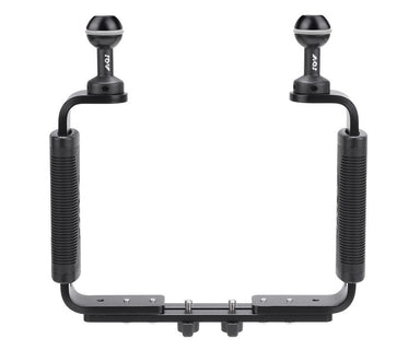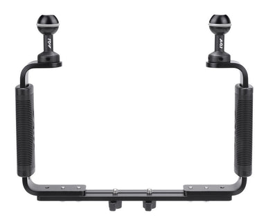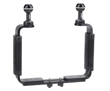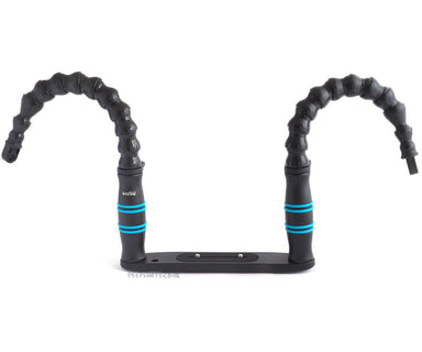 The Bigblue Dual Handle Standard tray for GoPro Cameras - Aluminium base and handles with a comfortable neoprene grip for each arm. - Each handle h...